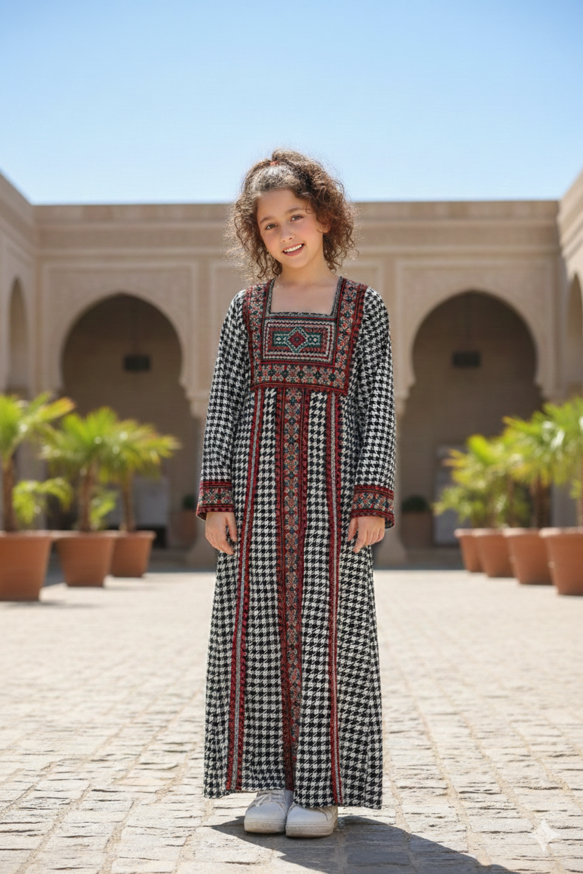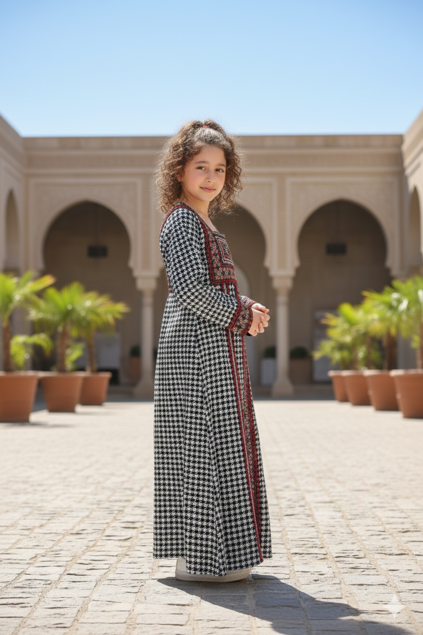 Girls' Saudi Crepe Abaya with Sinai Embroidery A Little Elegance with a Heritage Touch For a standout look for your little girl, choose this abaya made from soft Saudi crepe with a wide, comfortable fit, Beautifully adorned with Sinai-style embroidery inspired by authentic Egyptian heritage – just like the adult version. Perfect for special occasions, outings, or a stylish everyday look, available in sizes up to 12 years old.