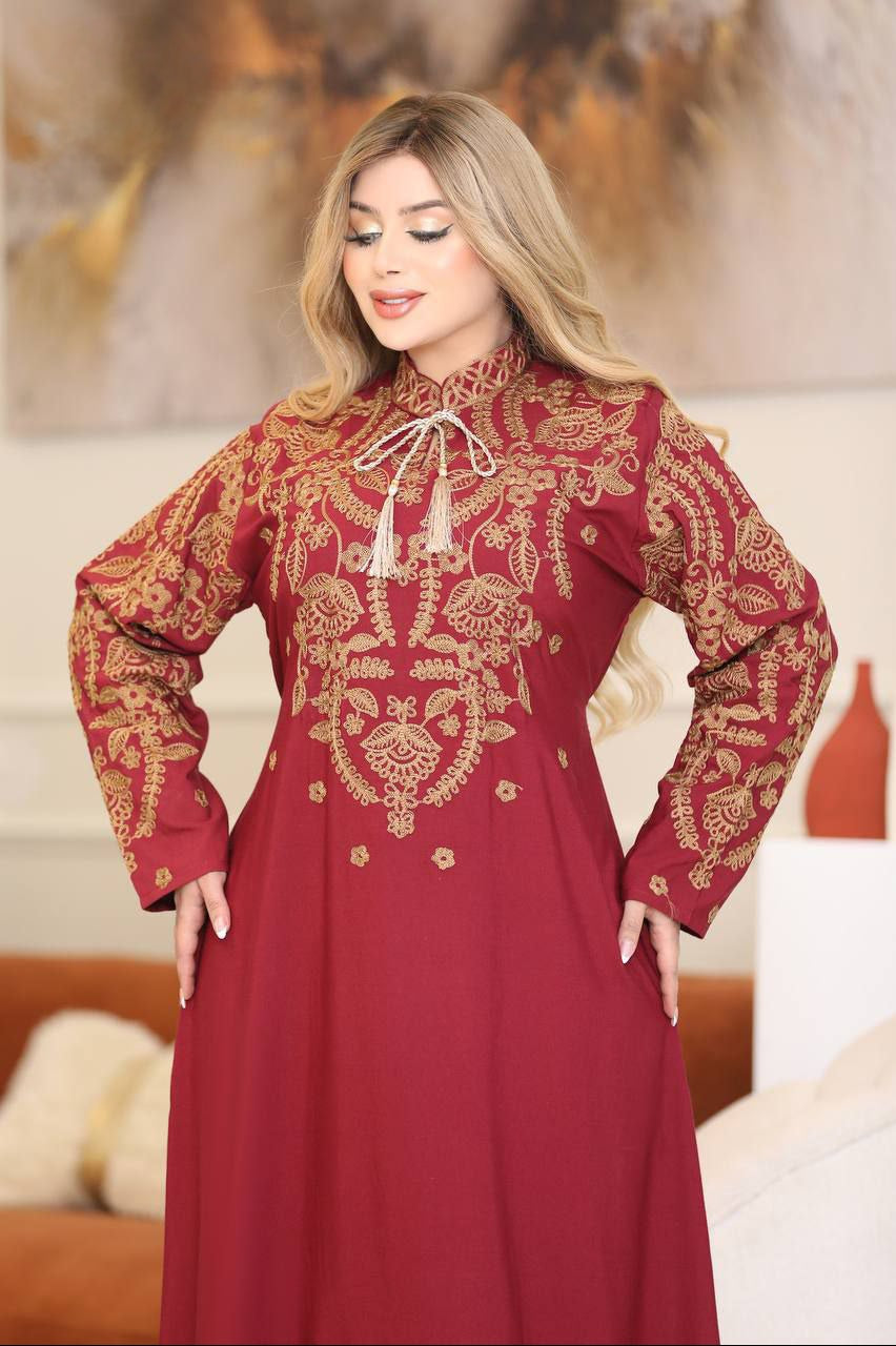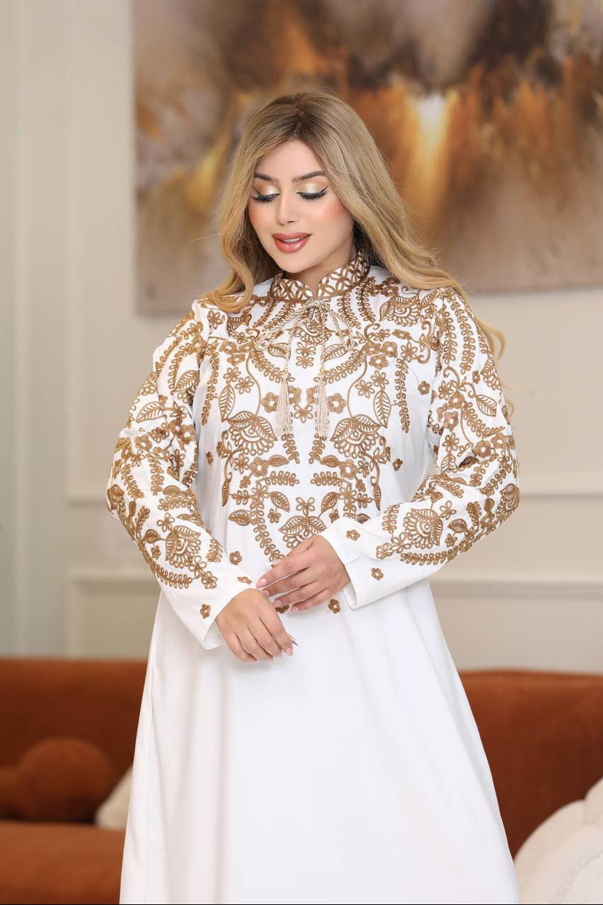 • التطريز: تطريز حريري فاخر بتفاصيل دقيقة
