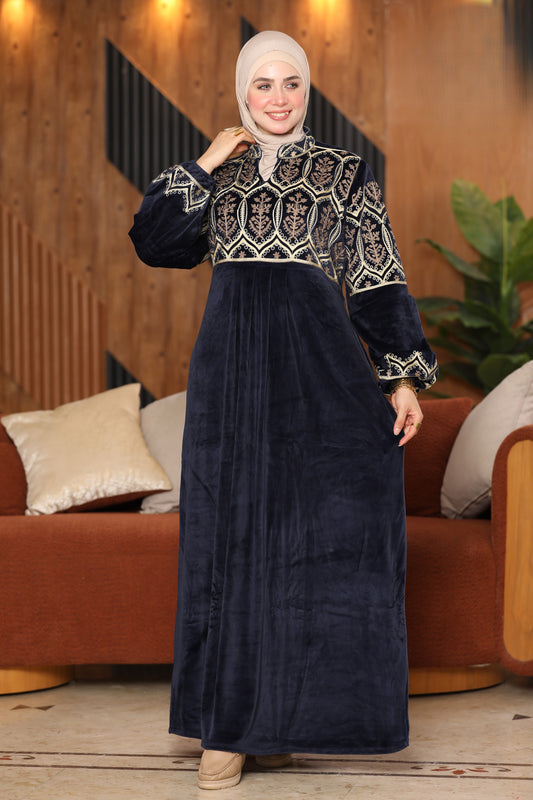 Embroidered velvet abaya