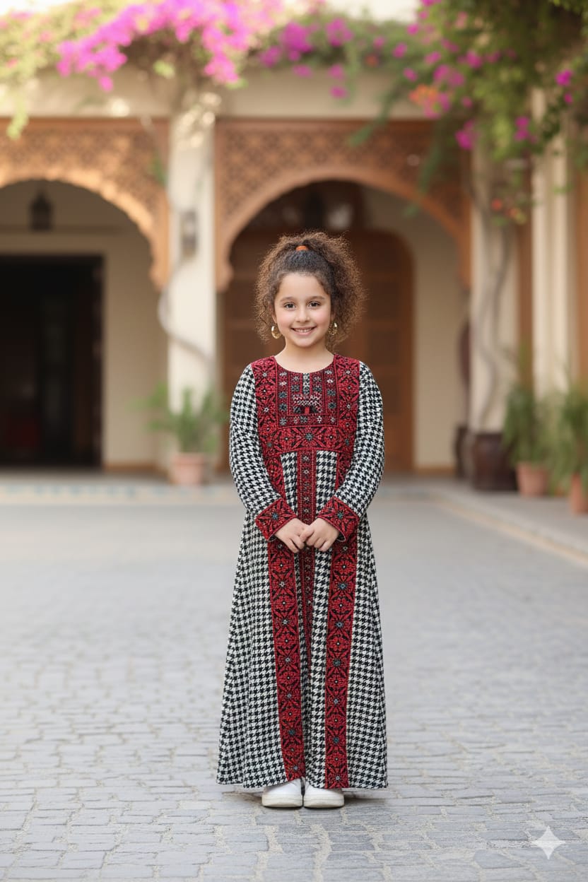 Girls' Saudi Crepe Abaya with Sinai Embroidery A Little Elegance with a Heritage Touch For a standout look for your little girl, choose this abaya made from soft Saudi crepe with a wide, comfortable fit, Beautifully adorned with Sinai-style embroidery inspired by authentic Egyptian heritage – just like the adult version. Perfect for special occasions, outings, or a stylish everyday look, available in sizes up to 12 years old.