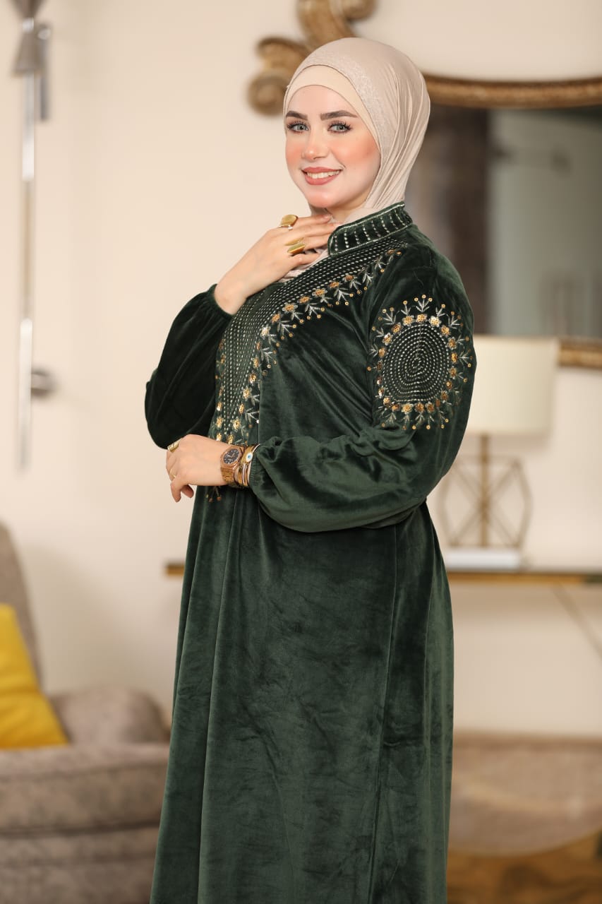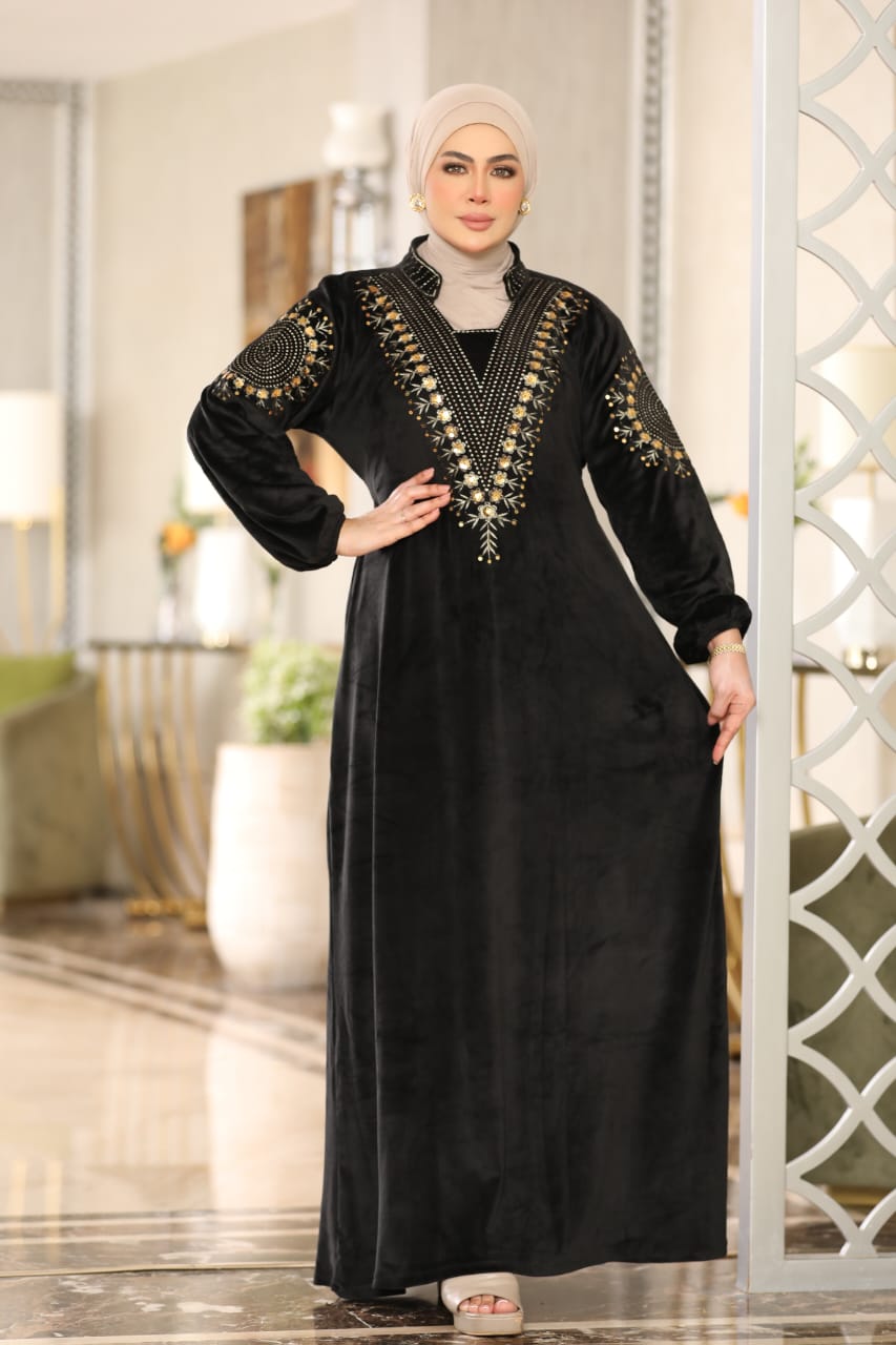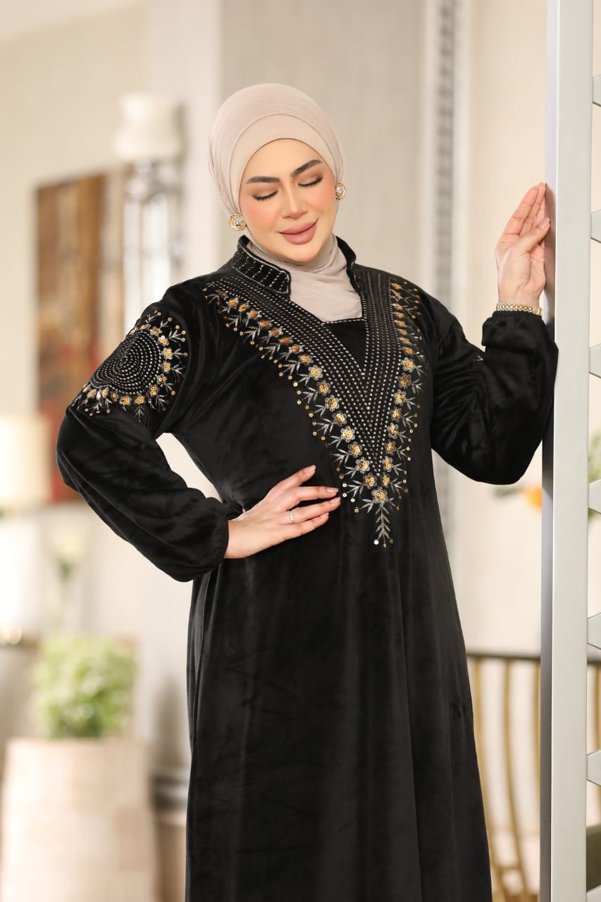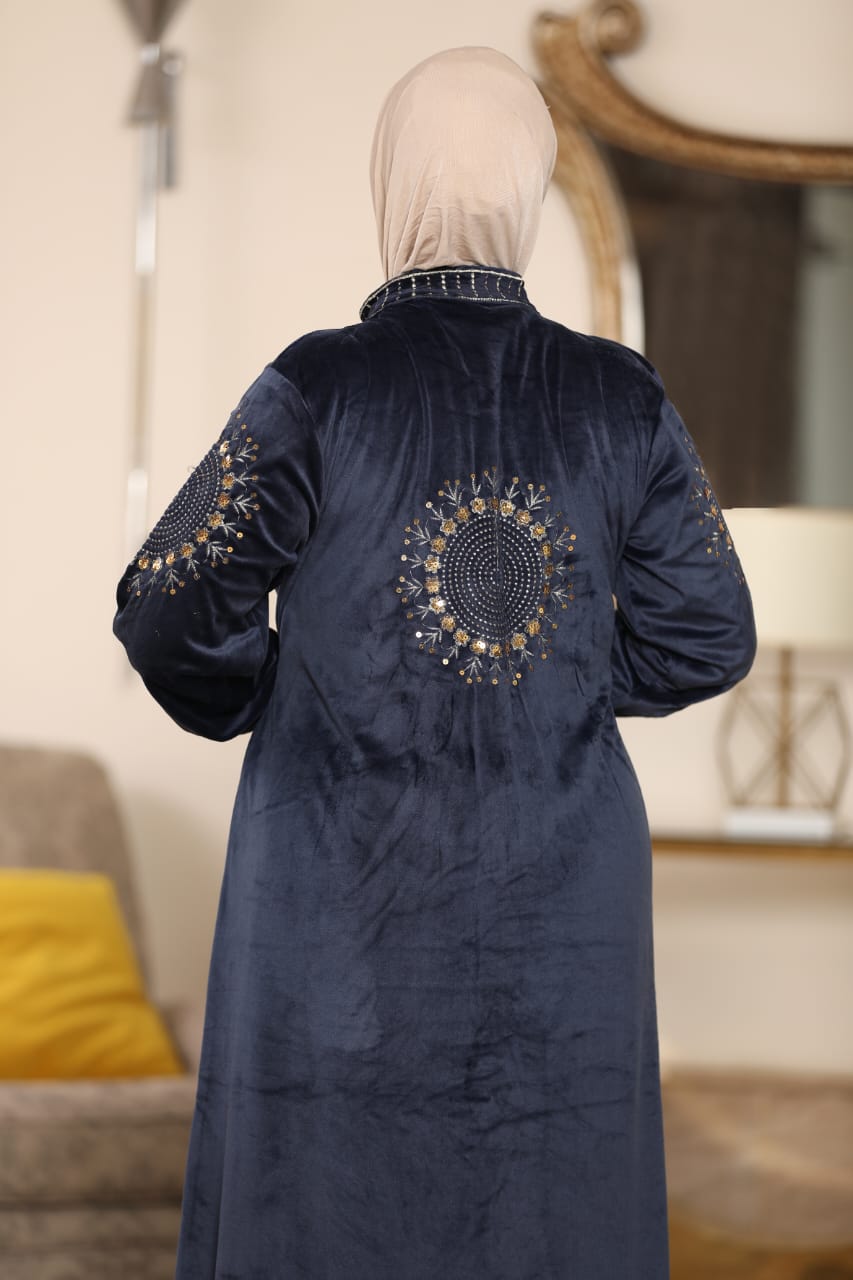 Elegant winter abaya made of premium Heidi velvet fabric, soft to the touch and perfectly combining warmth and elegance.