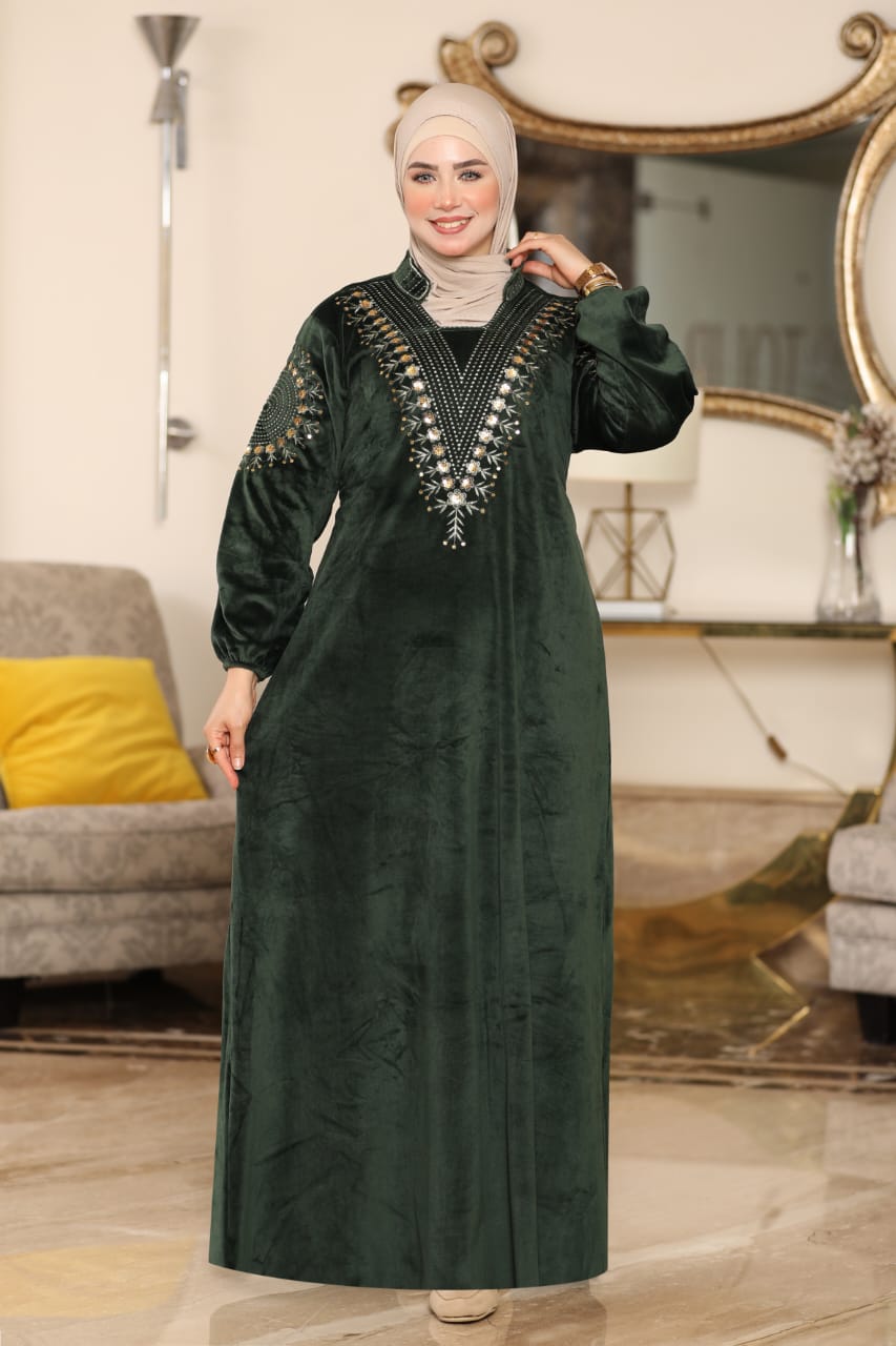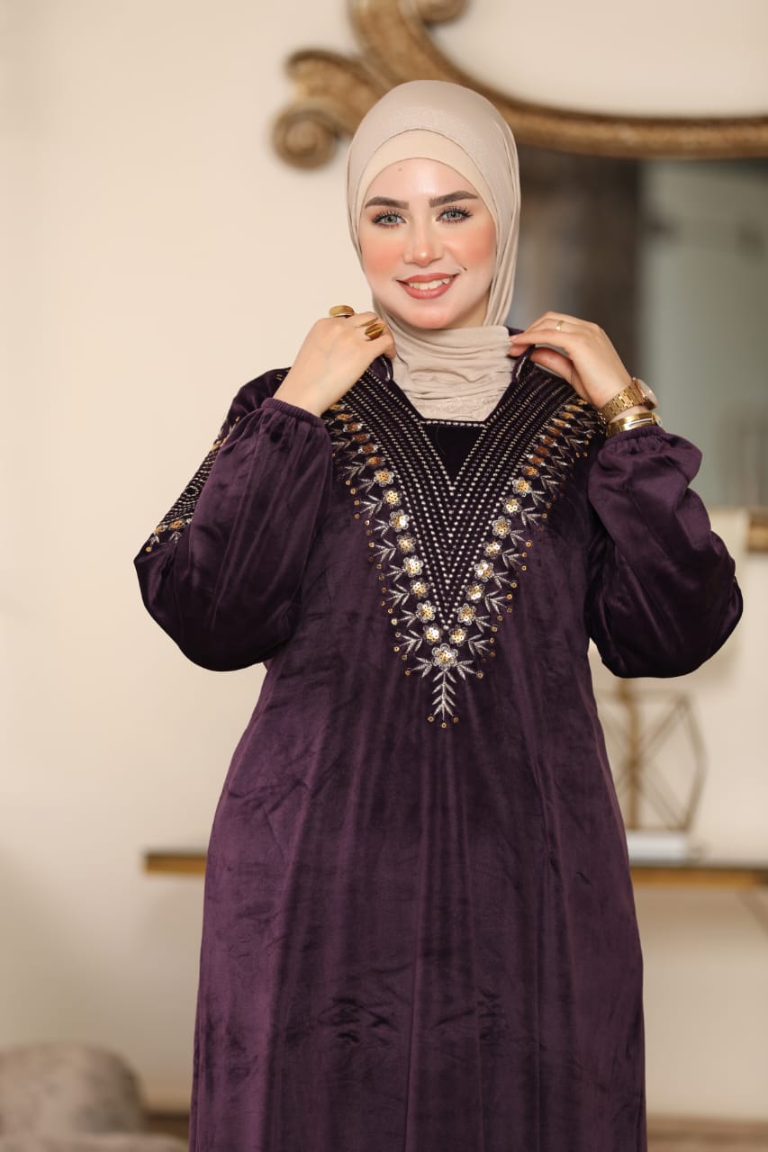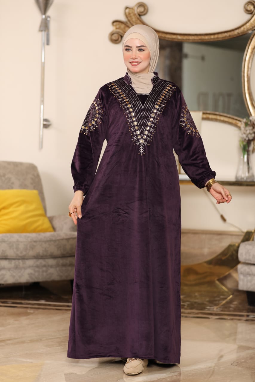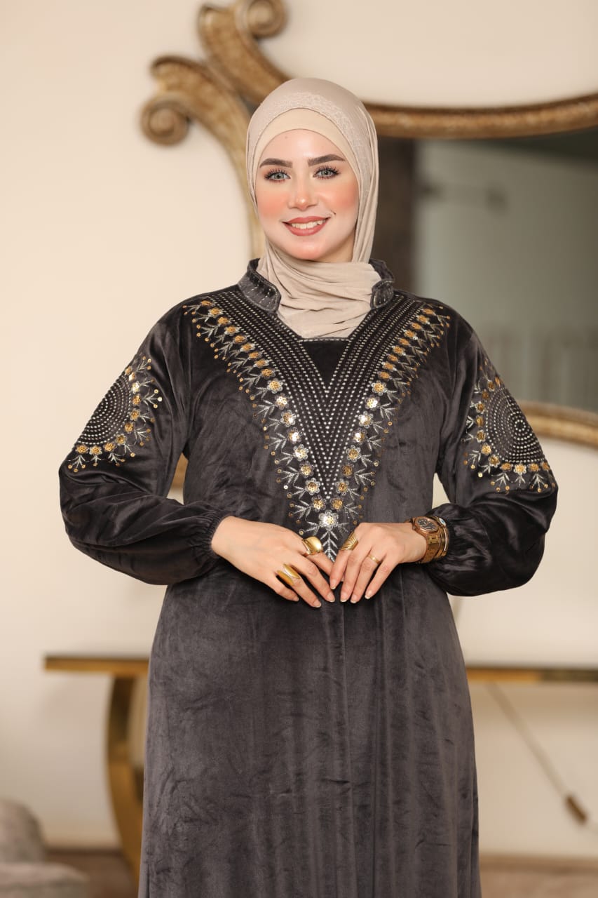 Elegant winter abaya made of premium Heidi velvet fabric, soft to the touch and perfectly combining warmth and elegance.