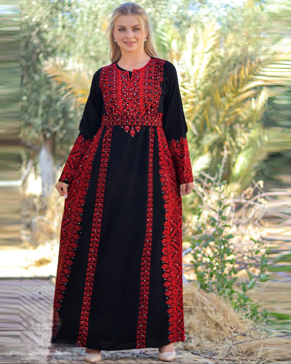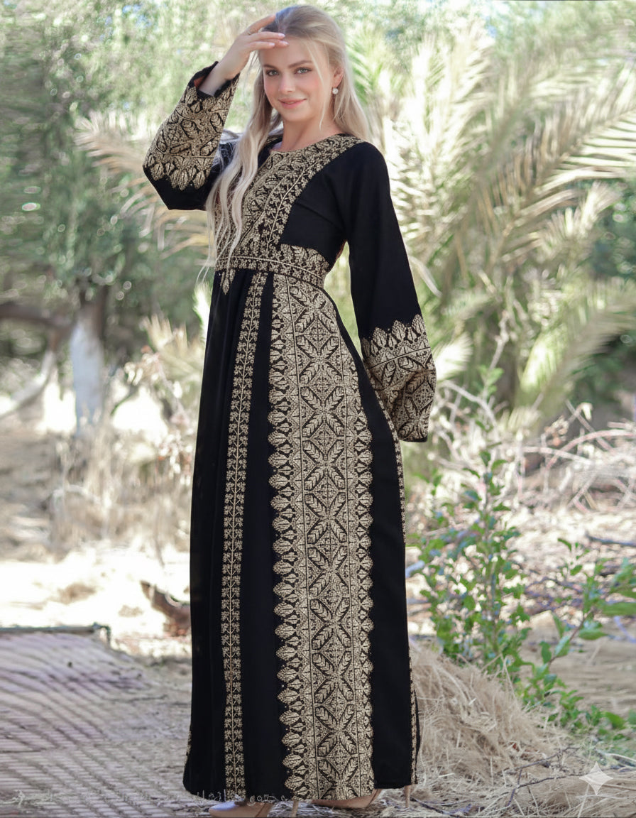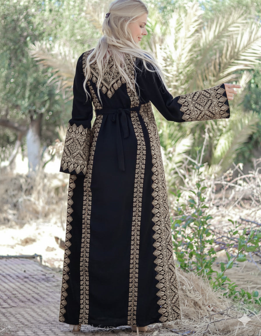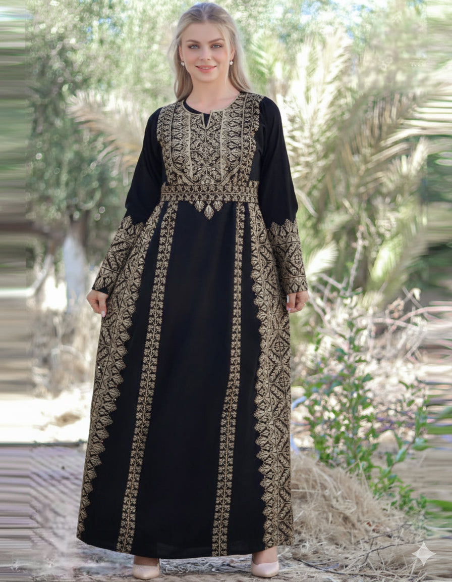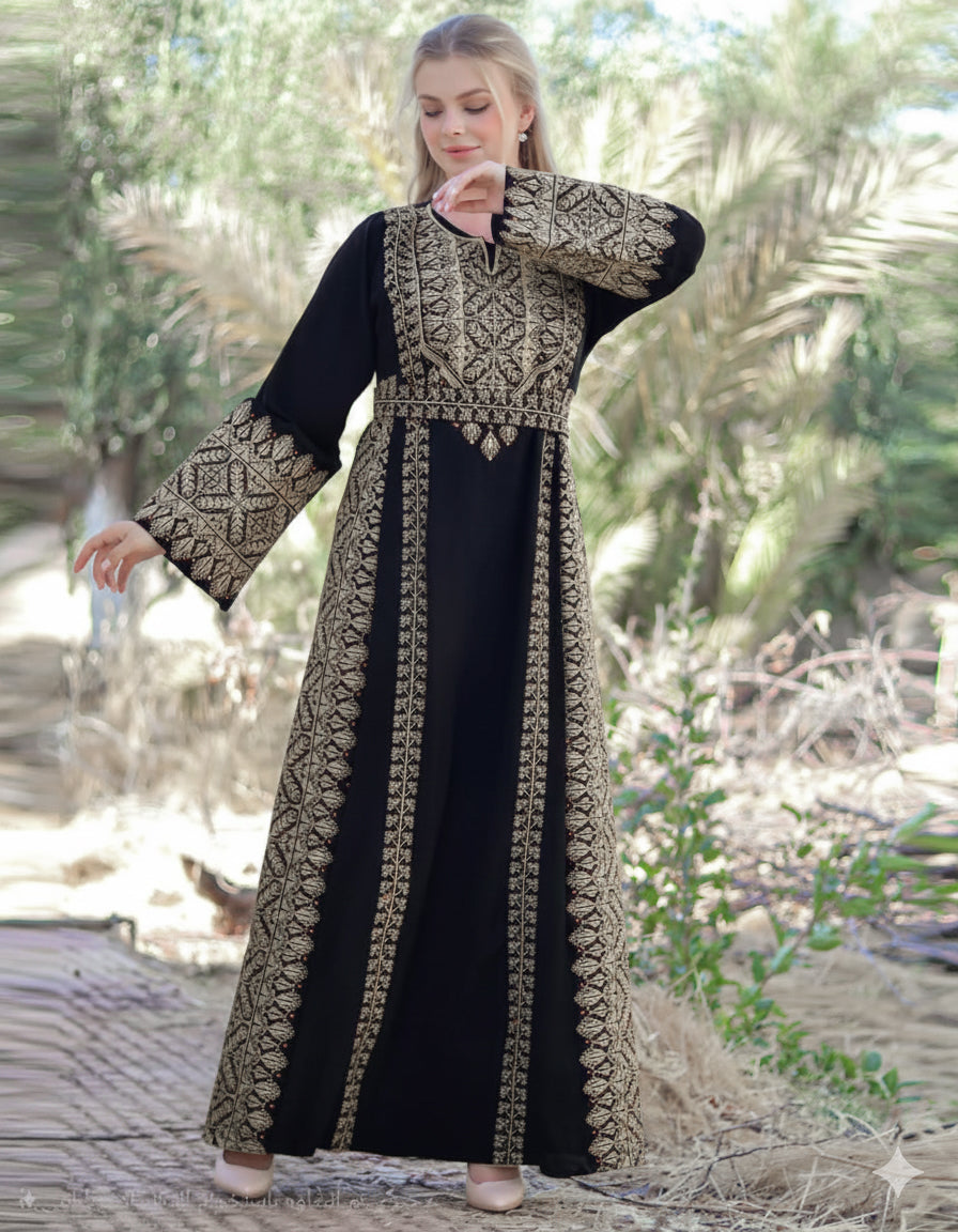 Elevate your wardrobe with a touch of timeless elegance. This masterpiece seamlessly blends the authenticity of Jordanian embroidery with the luxurious feel of premium Saudi crepe. Designed specifically for the woman who seeks a regal silhouette, this Abaya offers the perfect balance of modest grace and modern sophistication.
