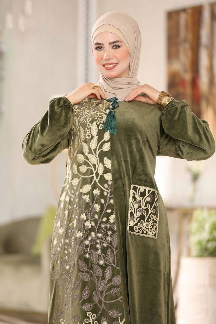 Elegant winter abaya made from premium Heidi velvet fabric, offering a soft, luxurious feel with a subtle shine that adds sophistication to any look.