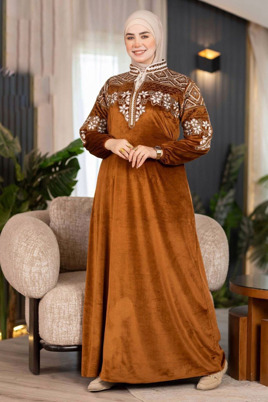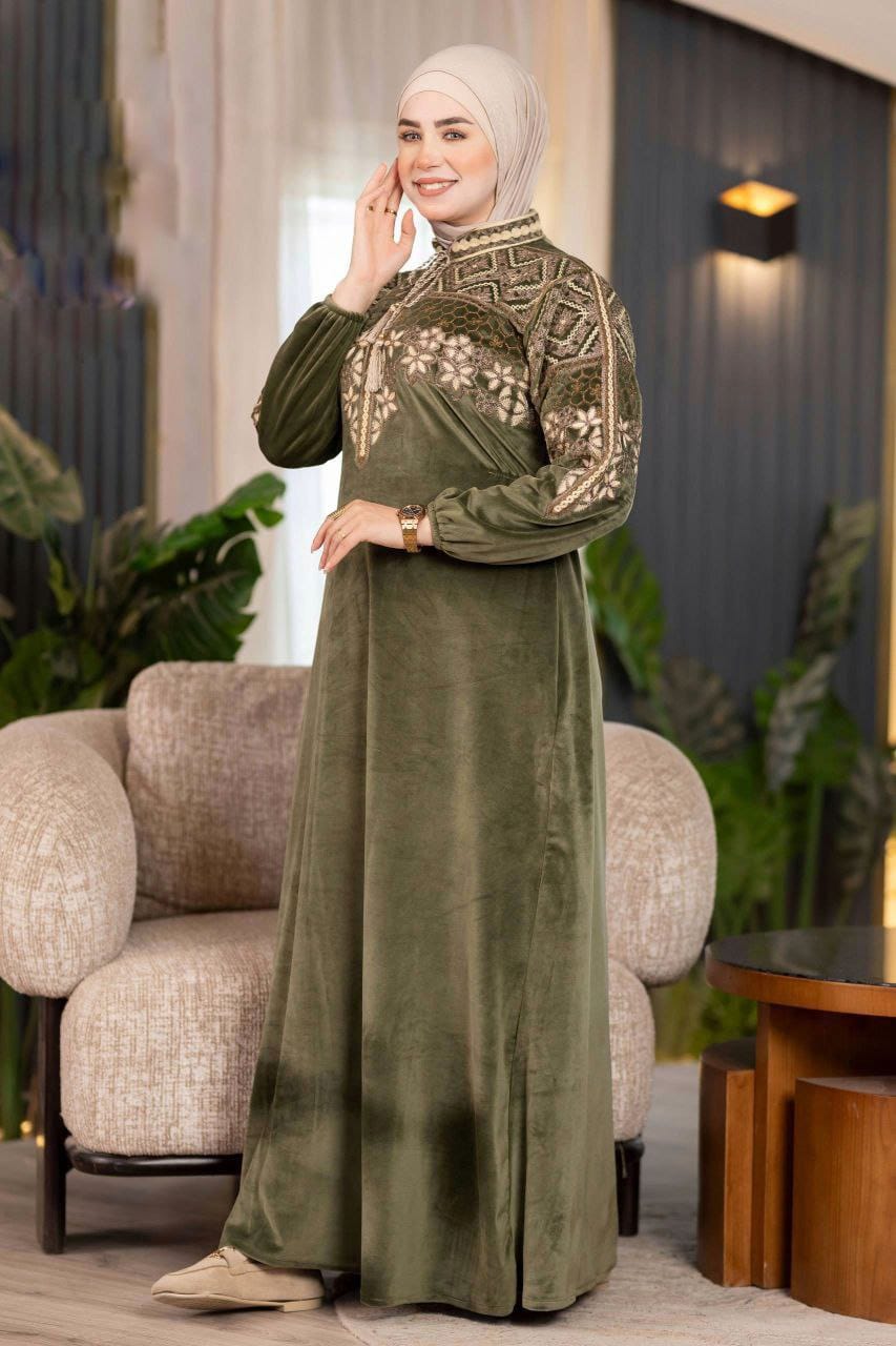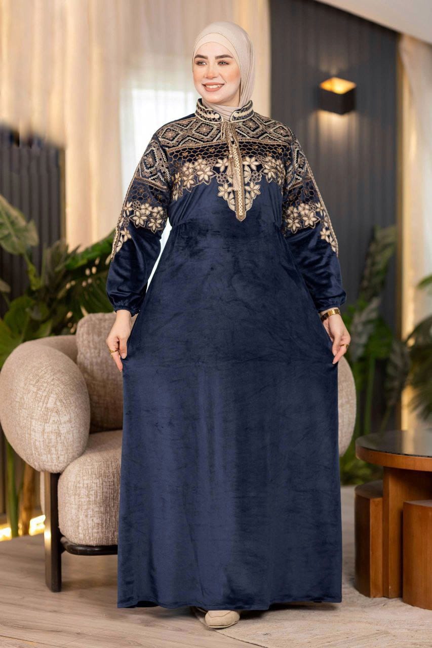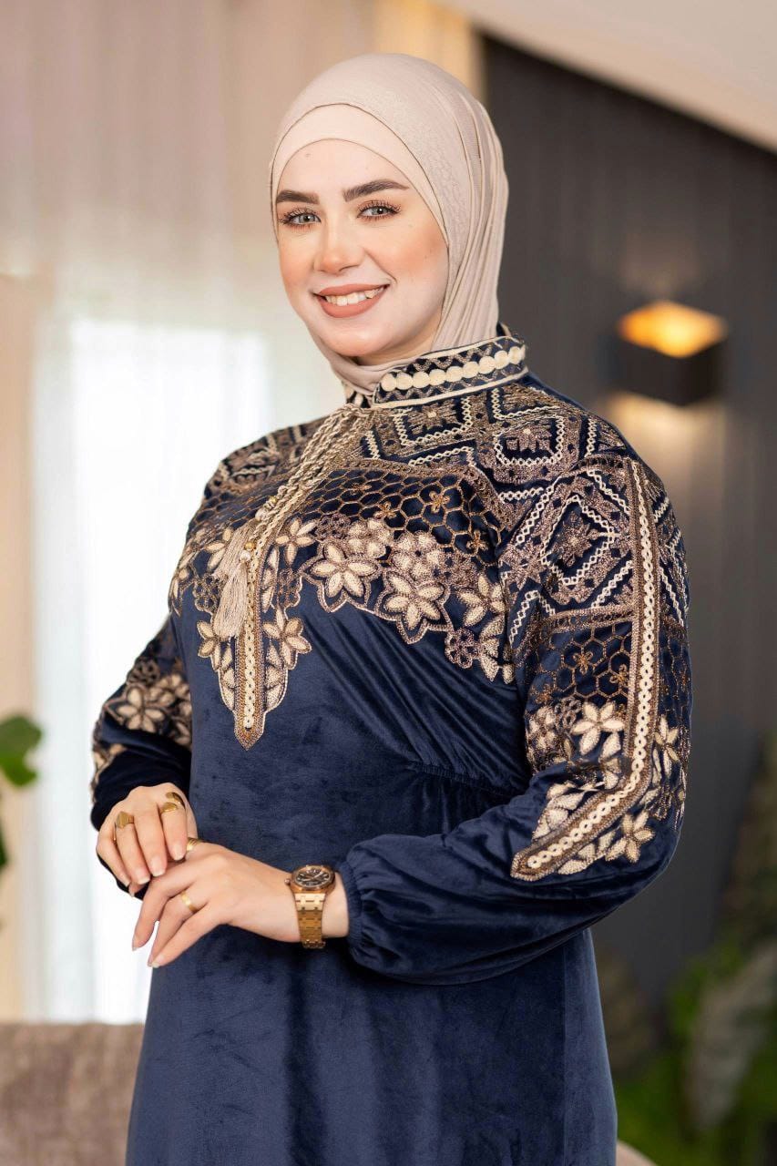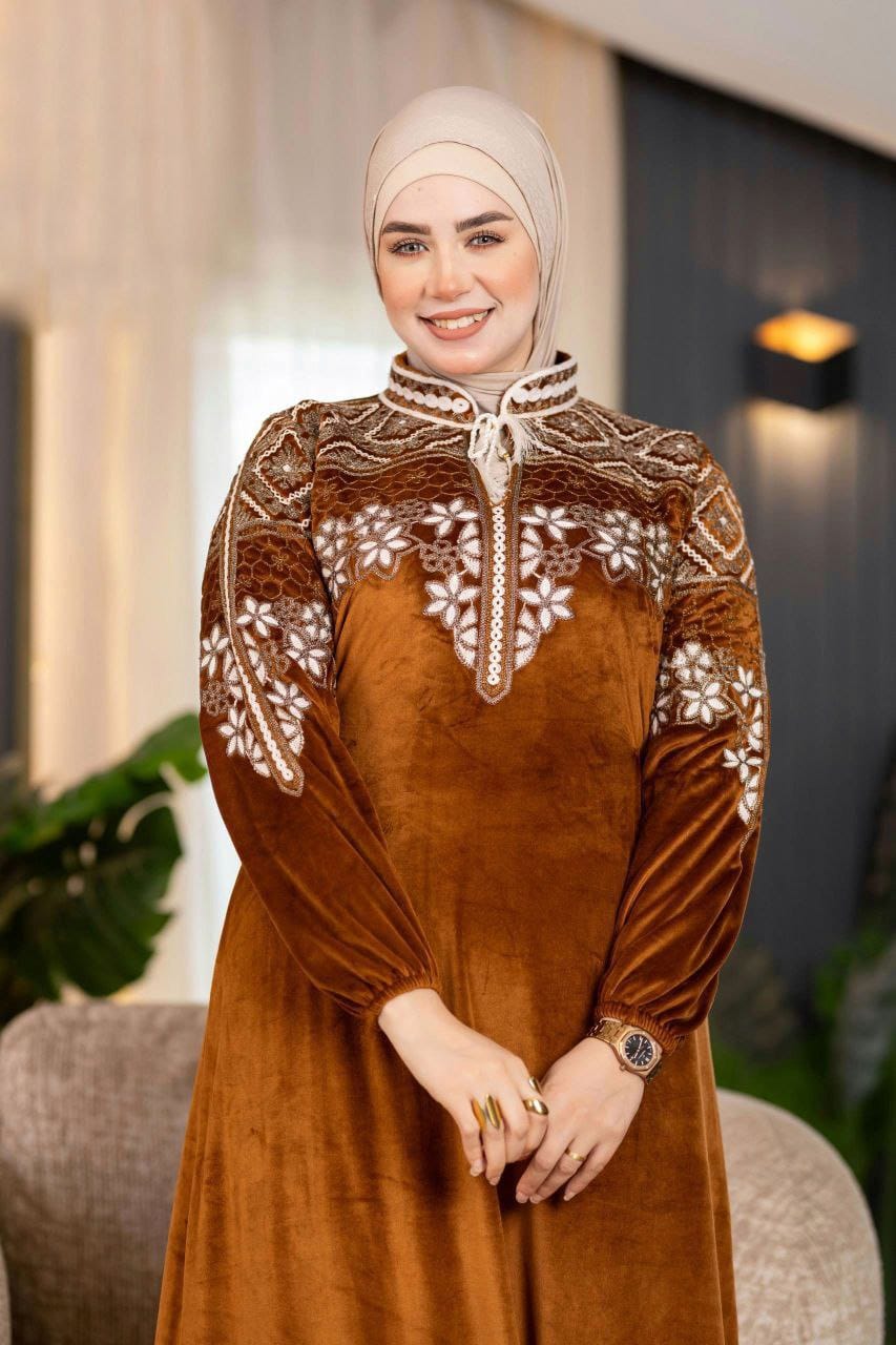 Luxurious abaya made of premium Heidi velvet, featuring shimmering thread embroidery on the chest and sleeves for a refined feminine look.