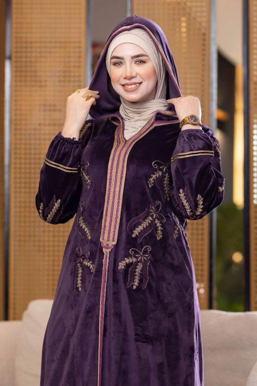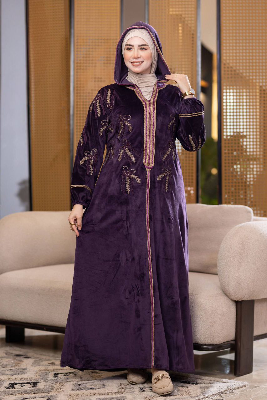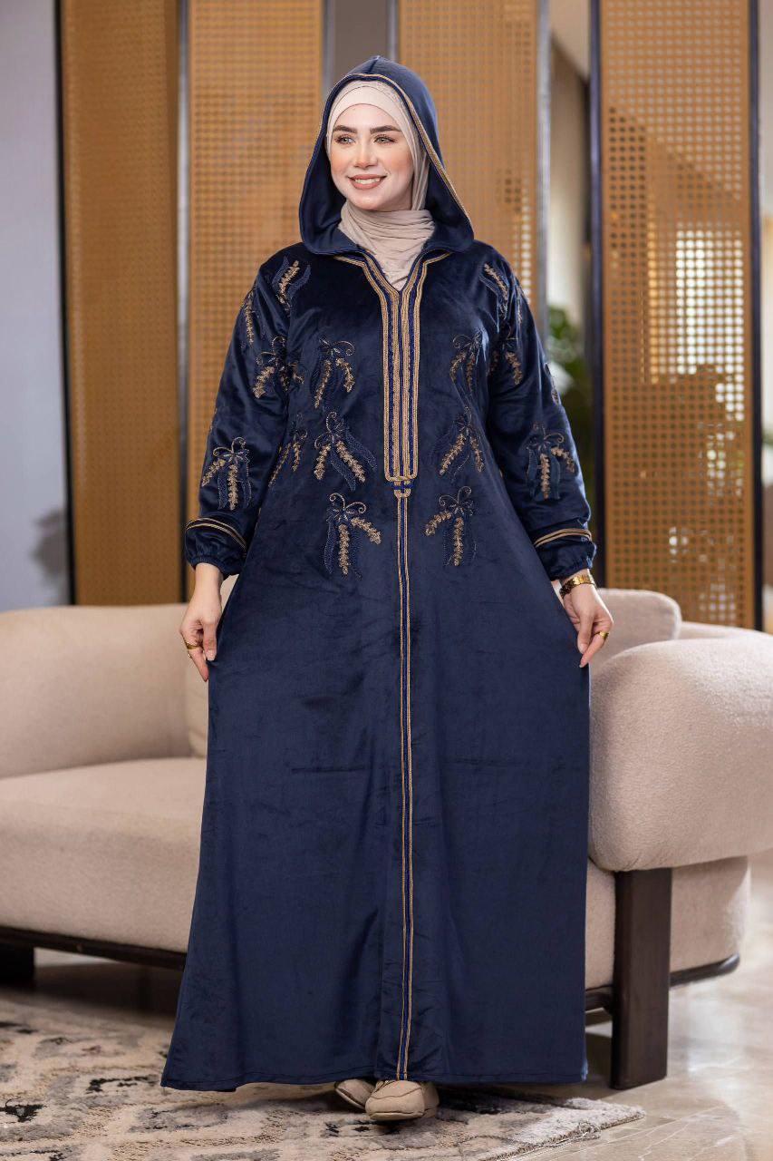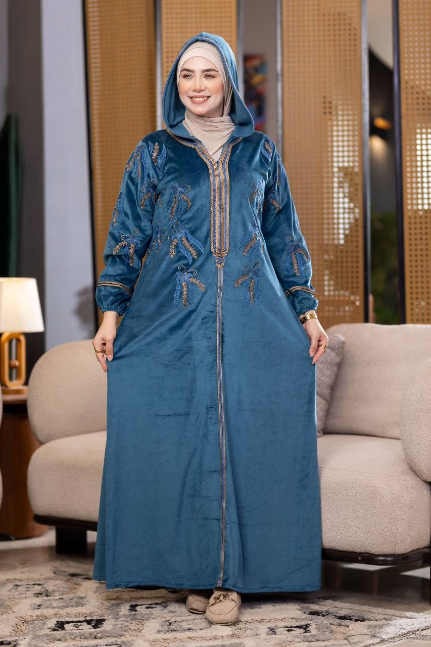 Elegant winter abaya made of premium Haidi velvet fabric, soft and cozy to the touch. Adorned with refined cotton embroidery for a luxurious touch, and designed with a stylish hood that adds a modern flair. Comfortable and perfect for daily outings or winter occasions.