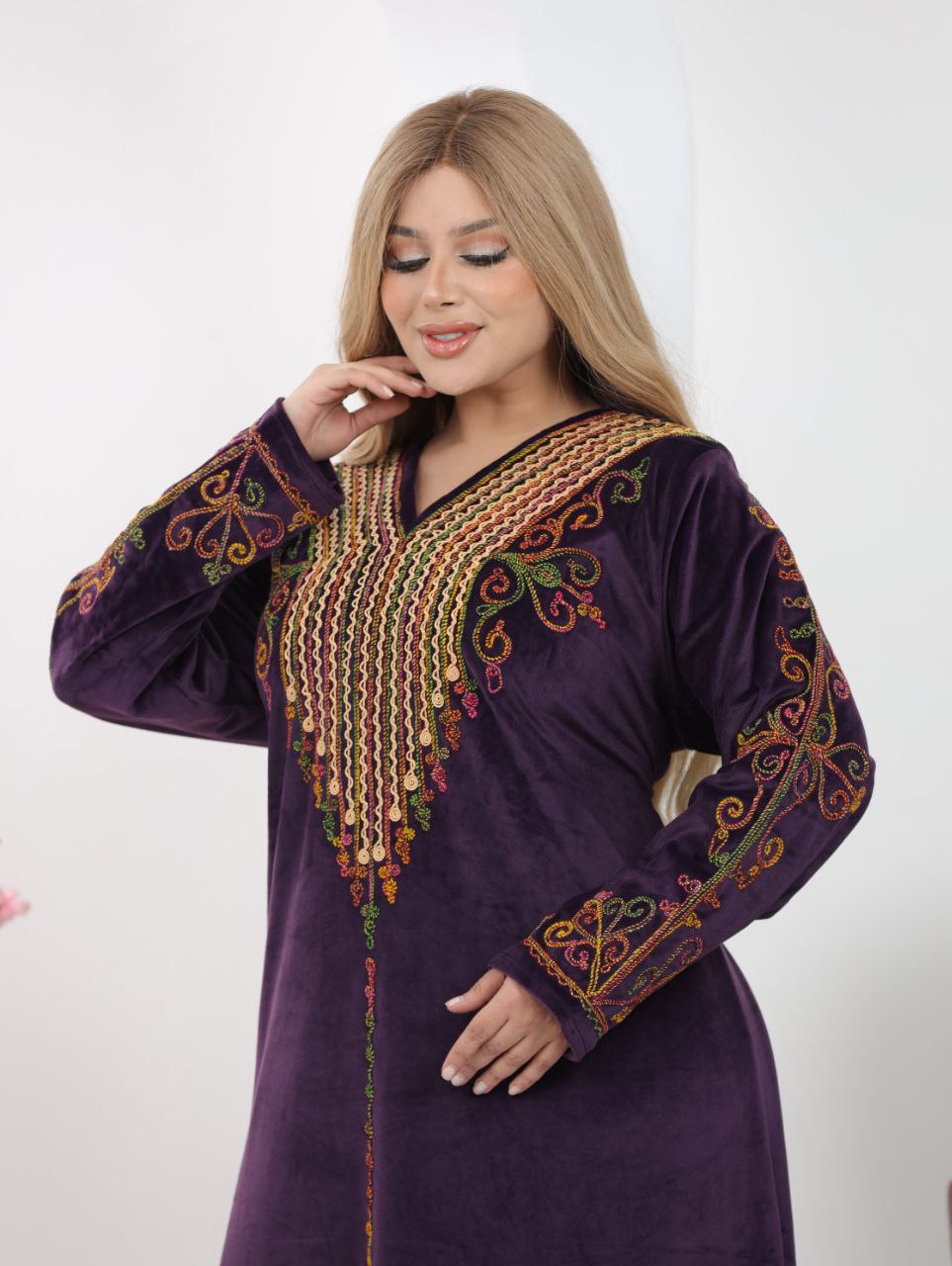 Step into elegance with this beautifully crafted velvet abaya, designed for both comfort and sophistication.